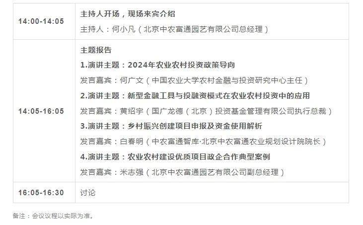 12月29日,由北京中農(nóng)富通園藝有限公司、北京中農(nóng)富通農(nóng)業(yè)規(guī)劃設(shè)計(jì)院主辦的第十四屆中國(guó)縣域現(xiàn)代農(nóng)業(yè)發(fā)展高層會(huì)議首場(chǎng)會(huì)議:“2024年政府投資農(nóng)業(yè)農(nóng)村建設(shè)項(xiàng)目”專......