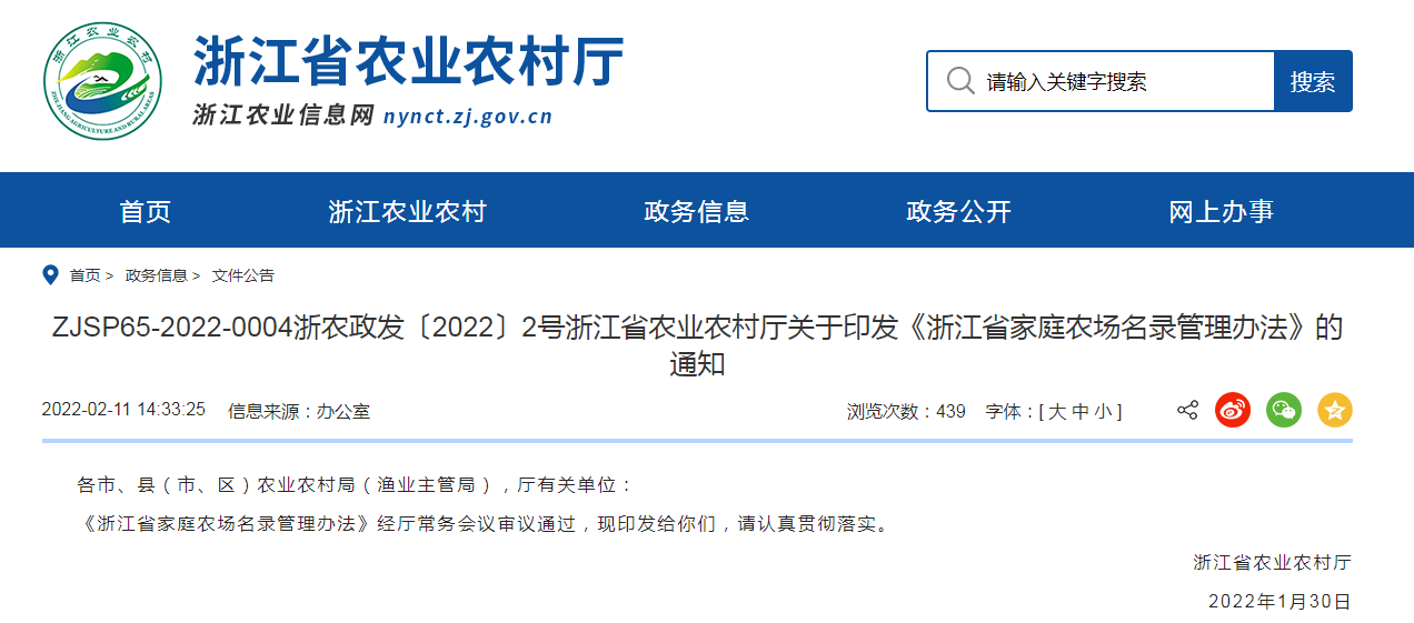 浙江省家庭農(nóng)場(chǎng)名錄管理辦法第一章 總 則第一條 為規(guī)范家庭農(nóng)場(chǎng)名錄管理,引導(dǎo)和促進(jìn)家庭農(nóng)場(chǎng)高質(zhì)量發(fā)展,根據(jù)中央和省委、省政府培育發(fā)展家庭農(nóng)場(chǎng)有關(guān)文件精神,制......