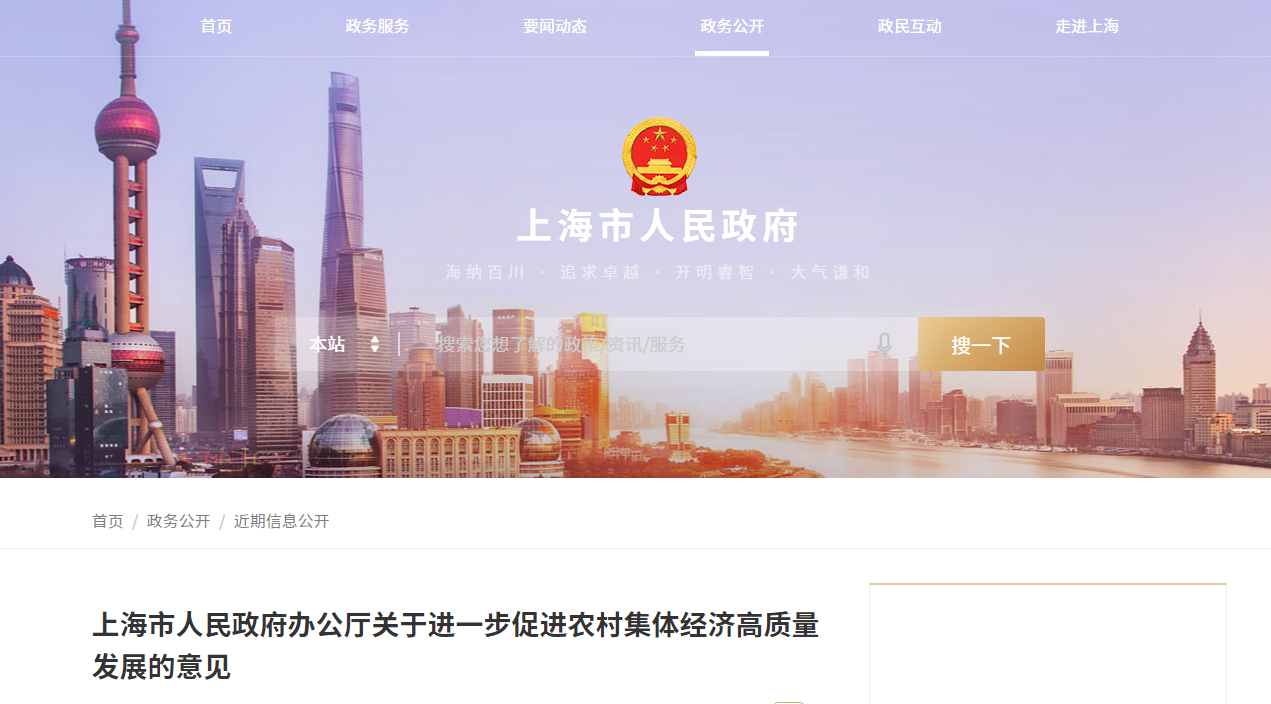 各區(qū)人民政府,市政府各委、辦、局:??發(fā)展和壯大農(nóng)村集體經(jīng)濟(jì),是強(qiáng)農(nóng)業(yè)、美農(nóng)村、富農(nóng)民的重要舉措,是實(shí)現(xiàn)鄉(xiāng)村振興的必由之路。為推進(jìn)我市農(nóng)村改革發(fā)展,促進(jìn)農(nóng)民農(nóng)村......