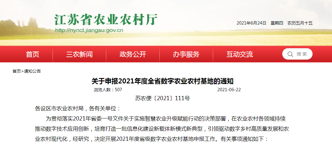 各設區(qū)市農(nóng)業(yè)農(nóng)村局,各有關單位:為貫徹落實2021年省委一號文件關于實施智慧農(nóng)業(yè)升級賦能行動的決策部署,在農(nóng)業(yè)農(nóng)村各領域持續(xù)推動數(shù)字技術應用創(chuàng)新,培育打造一批信......