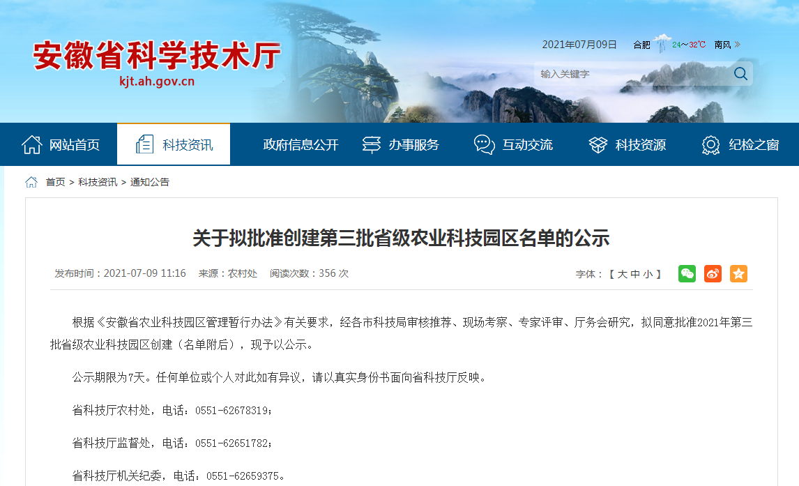 根據(jù)《安徽省農(nóng)業(yè)科技園區(qū)管理暫行辦法》有關要求,經(jīng)各市科技局審核推薦、現(xiàn)場考察、專家評審、廳務會研究,擬同意批準2021年第三批省級農(nóng)業(yè)科技園區(qū)創(chuàng)建(名單附后)......