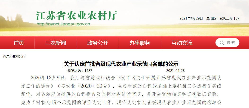 2020年12月9日,我廳與省財政廳聯(lián)合下發(fā)了《關(guān)于開展江蘇省現(xiàn)代農(nóng)業(yè)產(chǎn)業(yè)示范園認(rèn)定工作的通知》(蘇農(nóng)業(yè)〔2020〕29號),在各示范園自評的基礎(chǔ)上委托第三方進......