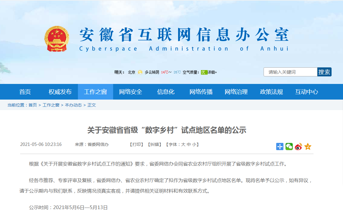 根據(jù)《關(guān)于開展安徽省數(shù)字鄉(xiāng)村試點工作的通知》要求,省委網(wǎng)信辦會同省農(nóng)業(yè)農(nóng)村廳組織開展了省級數(shù)字鄉(xiāng)村試點工作。 經(jīng)各市推薦、專家評審及復(fù)核,省委網(wǎng)信辦、省農(nóng)業(yè)農(nóng)......