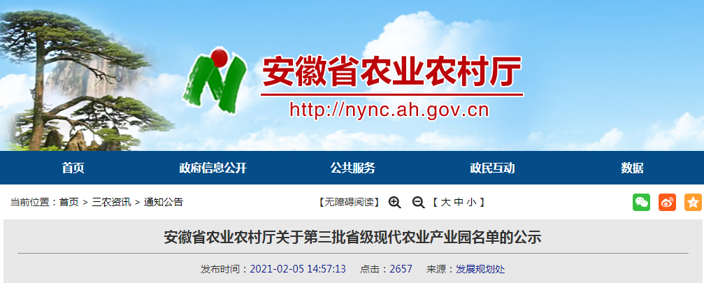 安徽省農(nóng)業(yè)農(nóng)村廳關于第三批省級現(xiàn)代農(nóng)業(yè)產(chǎn)業(yè)園名單的公示...