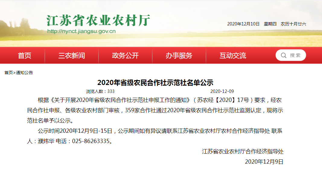 根據(jù)《關(guān)于開(kāi)展2020年省級(jí)農(nóng)民合作社示范社申報(bào)工作的通知》(蘇農(nóng)經(jīng)【2020】17號(hào))要求,經(jīng)農(nóng)民合作社申報(bào)、各級(jí)農(nóng)業(yè)農(nóng)村部門審核,359家合作社通過(guò)2020......