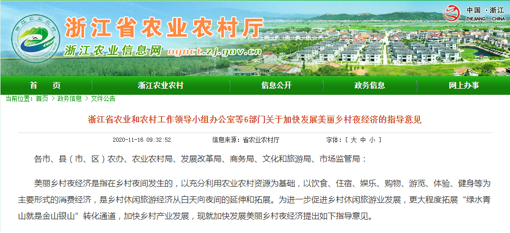 浙江省農業(yè)和農村工作領導小組辦公室等6部門關于加快發(fā)展美麗鄉(xiāng)村夜經濟的指導意見 各市、縣(市、區(qū))農辦、農業(yè)農村局、發(fā)展改革局、商務局、文化和旅游局、市場監(jiān)管......