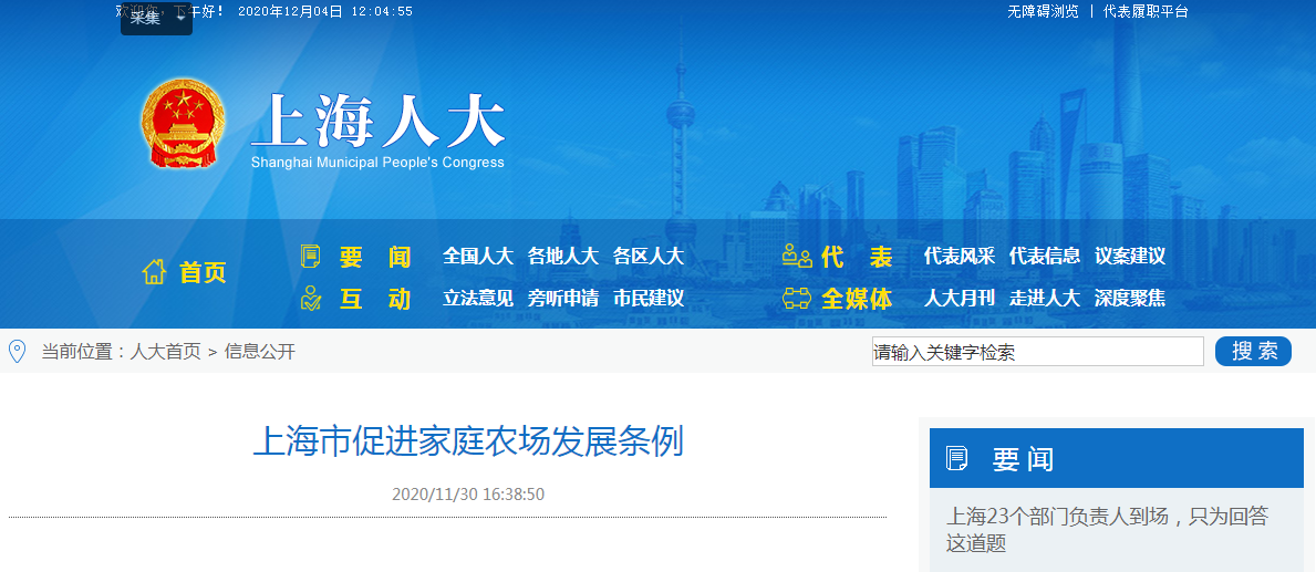 《上海市促進家庭農場發(fā)展條例》已由上海市第十五屆人民代表大會常務委員會第二十七次會議于2020年11月27日通過,現(xiàn)予公布,自2021年1月1日起施行。...