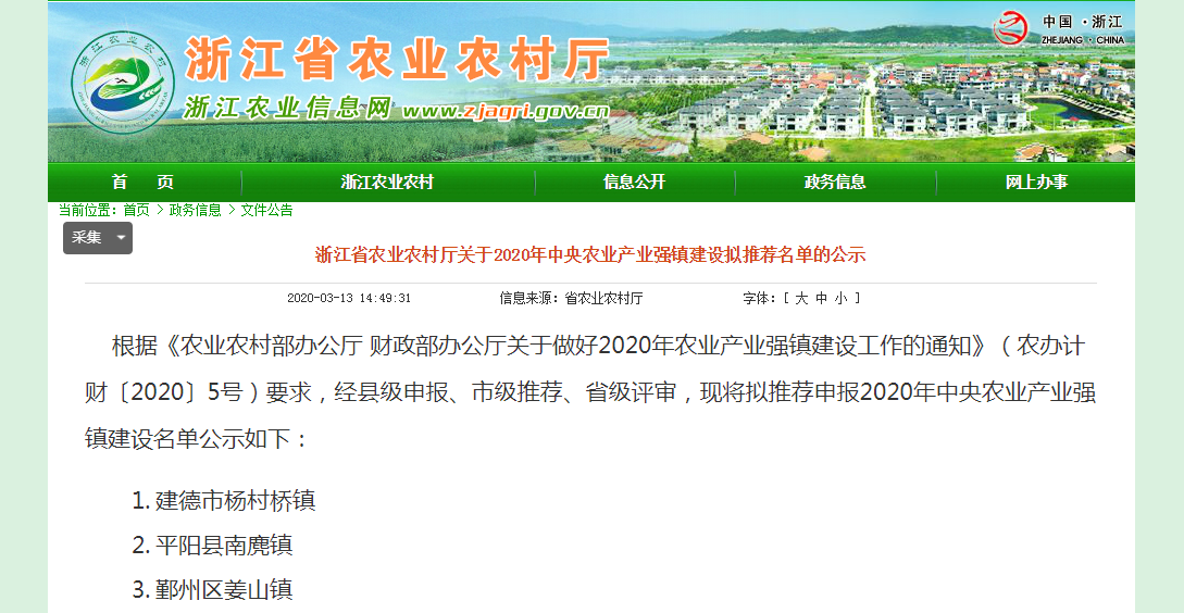根據(jù)《農(nóng)業(yè)農(nóng)村部辦公廳 財(cái)政部辦公廳關(guān)于做好2020年農(nóng)業(yè)產(chǎn)業(yè)強(qiáng)鎮(zhèn)建設(shè)工作的通知》(農(nóng)辦計(jì)財(cái)〔2020〕5號(hào))要求,經(jīng)縣級(jí)申報(bào)、市級(jí)推薦、省級(jí)評(píng)審,現(xiàn)將擬推薦申......