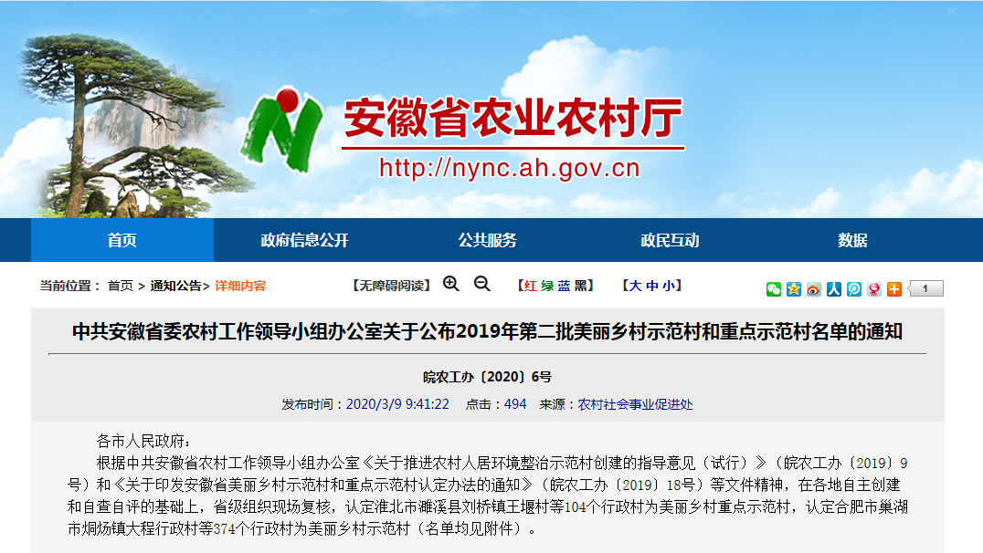各市人民政府:根據(jù)中共安徽省農(nóng)村工作領(lǐng)導(dǎo)小組辦公室《關(guān)于推進(jìn)農(nóng)村人居環(huán)境整治示范村創(chuàng)建的指導(dǎo)意見(jiàn)(試行)》(皖農(nóng)工辦〔2019〕9號(hào))和《關(guān)于印發(fā)安徽省美麗鄉(xiāng)村......