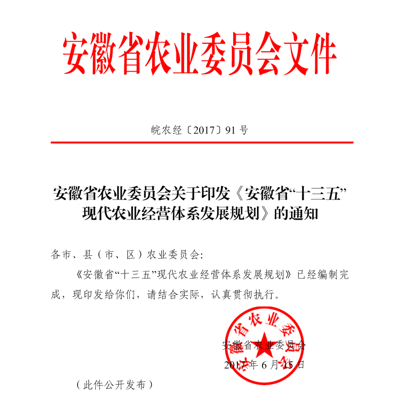 近日,省農(nóng)委印發(fā)《安徽省“十三五”現(xiàn)代農(nóng)業(yè)經(jīng)營(yíng)體系發(fā)展規(guī)劃》,明確了當(dāng)前及以后一段時(shí)間農(nóng)業(yè)經(jīng)營(yíng)體系發(fā)展目標(biāo)及任務(wù)。...