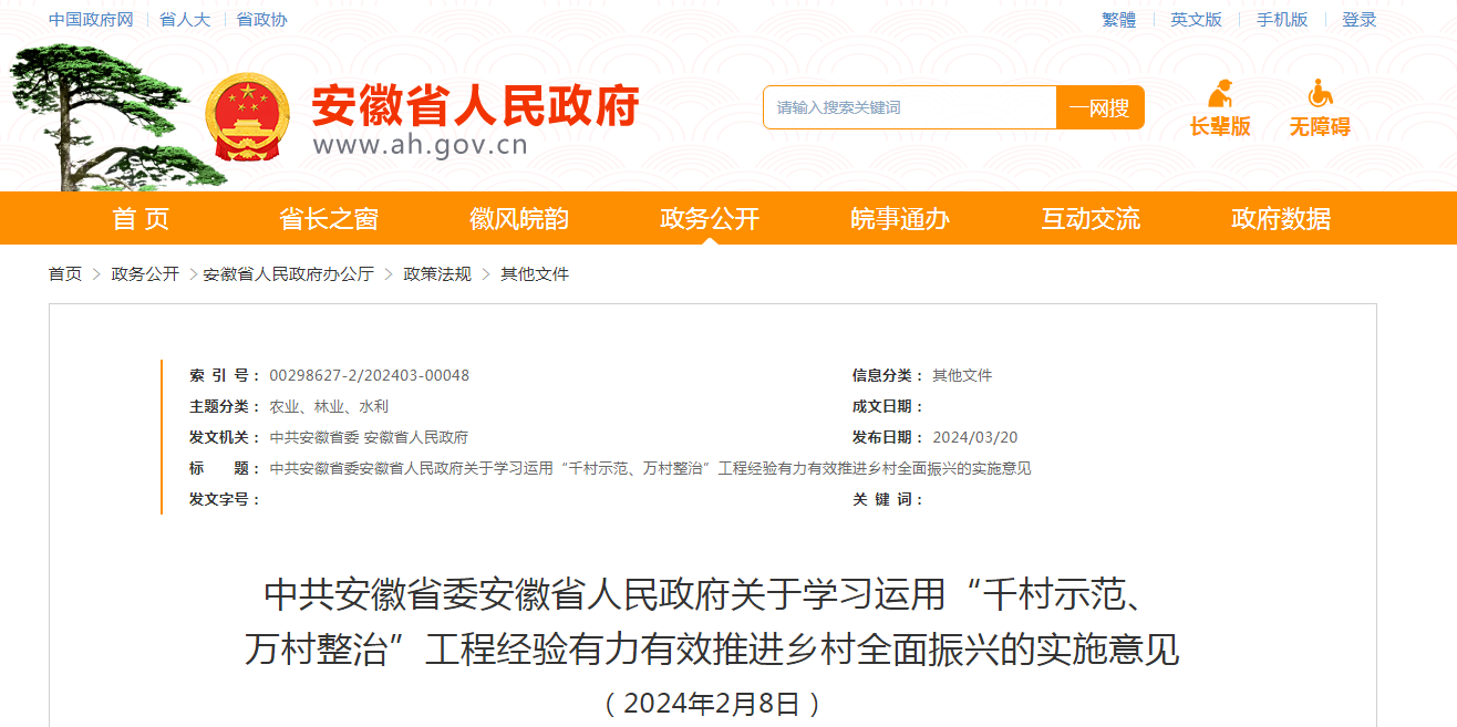 根據(jù)《中共中央、國(guó)務(wù)院關(guān)于學(xué)習(xí)運(yùn)用“千村示范、萬(wàn)村整治”工程經(jīng)驗(yàn)有力有效推進(jìn)鄉(xiāng)村全面振興的意見(jiàn)》,結(jié)合我省實(shí)際,提出如下實(shí)施意見(jiàn)。一、總體要求做好2024年及今......