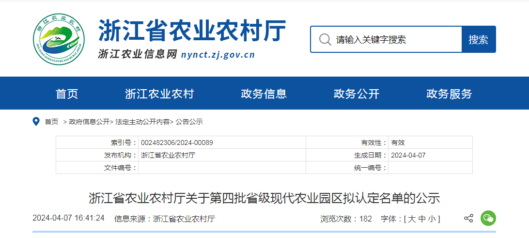 根據(jù)《浙江省現(xiàn)代農(nóng)業(yè)園區(qū)、特色農(nóng)業(yè)強(qiáng)鎮(zhèn)驗(yàn)收辦法(試行)》和《關(guān)于開(kāi)展2023年度省級(jí)現(xiàn)代農(nóng)業(yè)園區(qū)創(chuàng)建申報(bào)和第四批省級(jí)現(xiàn)代農(nóng)業(yè)園區(qū)驗(yàn)收工作的通知》要求,經(jīng)省農(nóng)業(yè)農(nóng)......