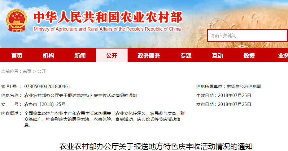農(nóng)業(yè)農(nóng)村部辦公廳關于 報送地方特色慶豐收活動情況的通知...