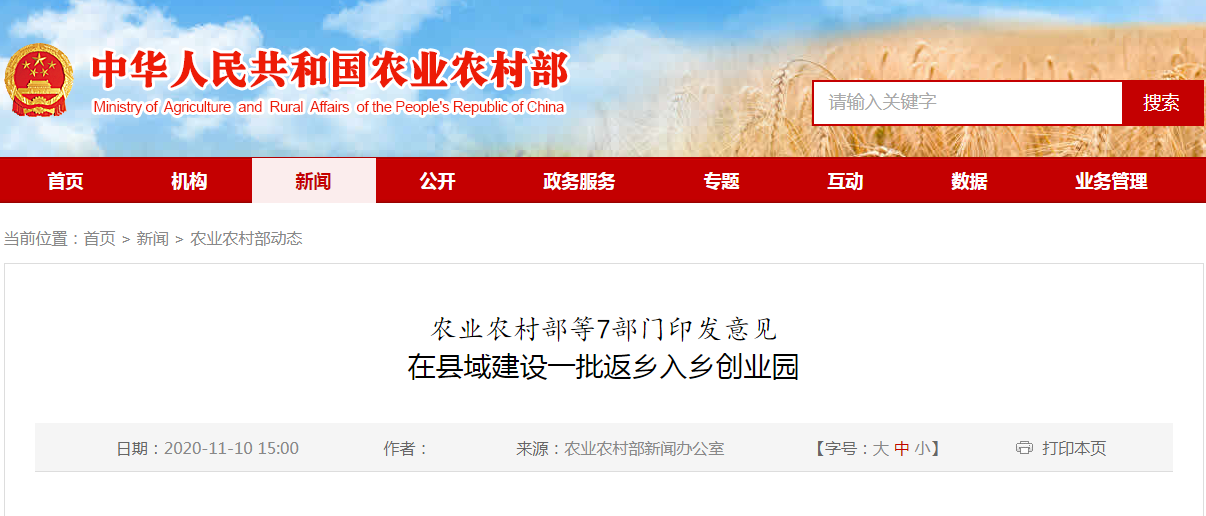 近日,農(nóng)業(yè)農(nóng)村部聯(lián)合科技部、財政部、人力資源社會保障部、自然資源部、商務(wù)部和銀保監(jiān)會等7部門印發(fā)《關(guān)于推進返鄉(xiāng)入鄉(xiāng)創(chuàng)業(yè)園建設(shè) 提升農(nóng)村創(chuàng)業(yè)創(chuàng)新水平的意見》?!兑?.....