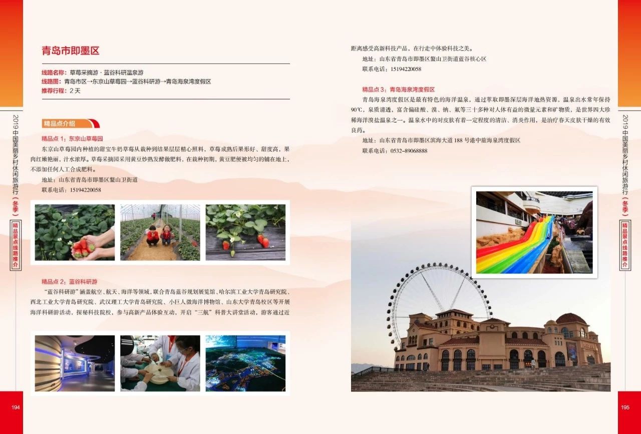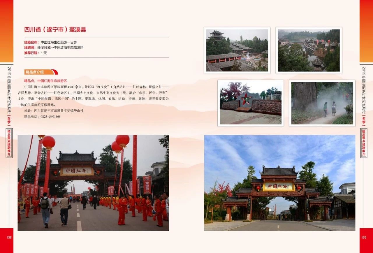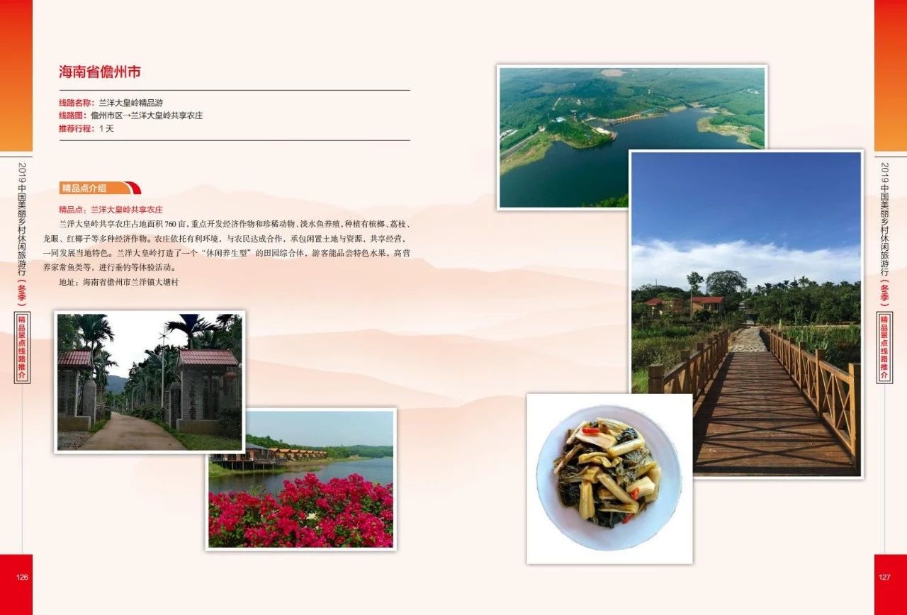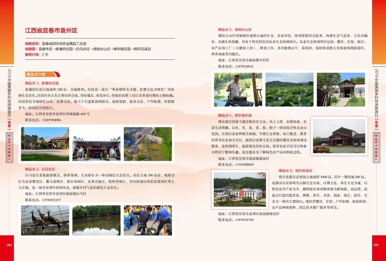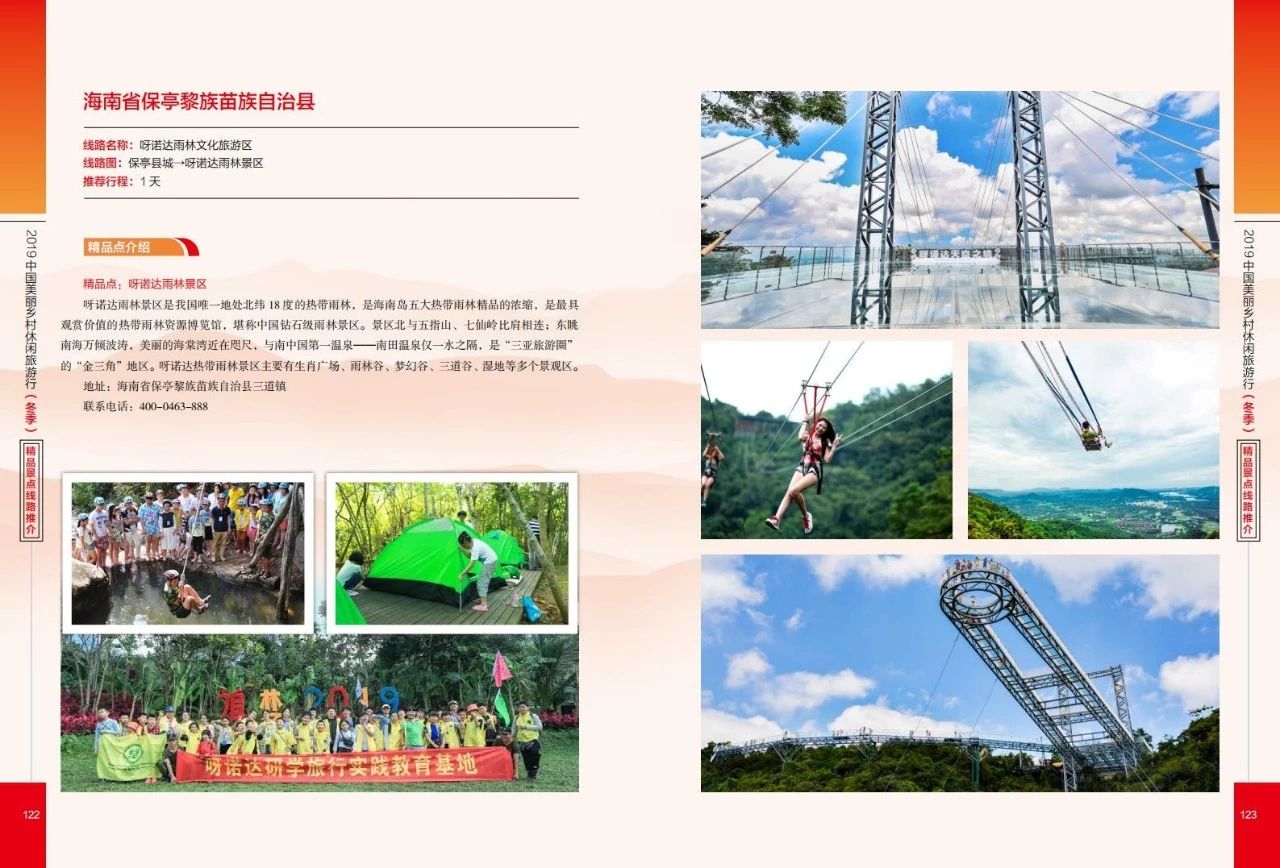 12月24日,2019中國(guó)美麗鄉(xiāng)村休閑旅游行(冬季)推介活動(dòng)在海南省瓊海市博鰲鎮(zhèn)舉辦,發(fā)布休閑農(nóng)業(yè)和鄉(xiāng)村旅游冬季精品旅游線路100條、景點(diǎn)273個(gè)。這是農(nóng)業(yè)農(nóng)村部鄉(xiāng)村休閑旅游“春觀花”“夏納涼”“秋采摘”“冬農(nóng)趣”系列推介活動(dòng)中的冬季主題活動(dòng)。至此,2019年四季活動(dòng)共推介線路410條、景點(diǎn)1300個(gè),精品景點(diǎn)線路37條。