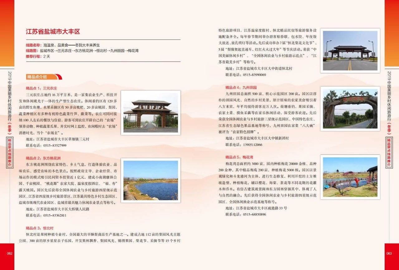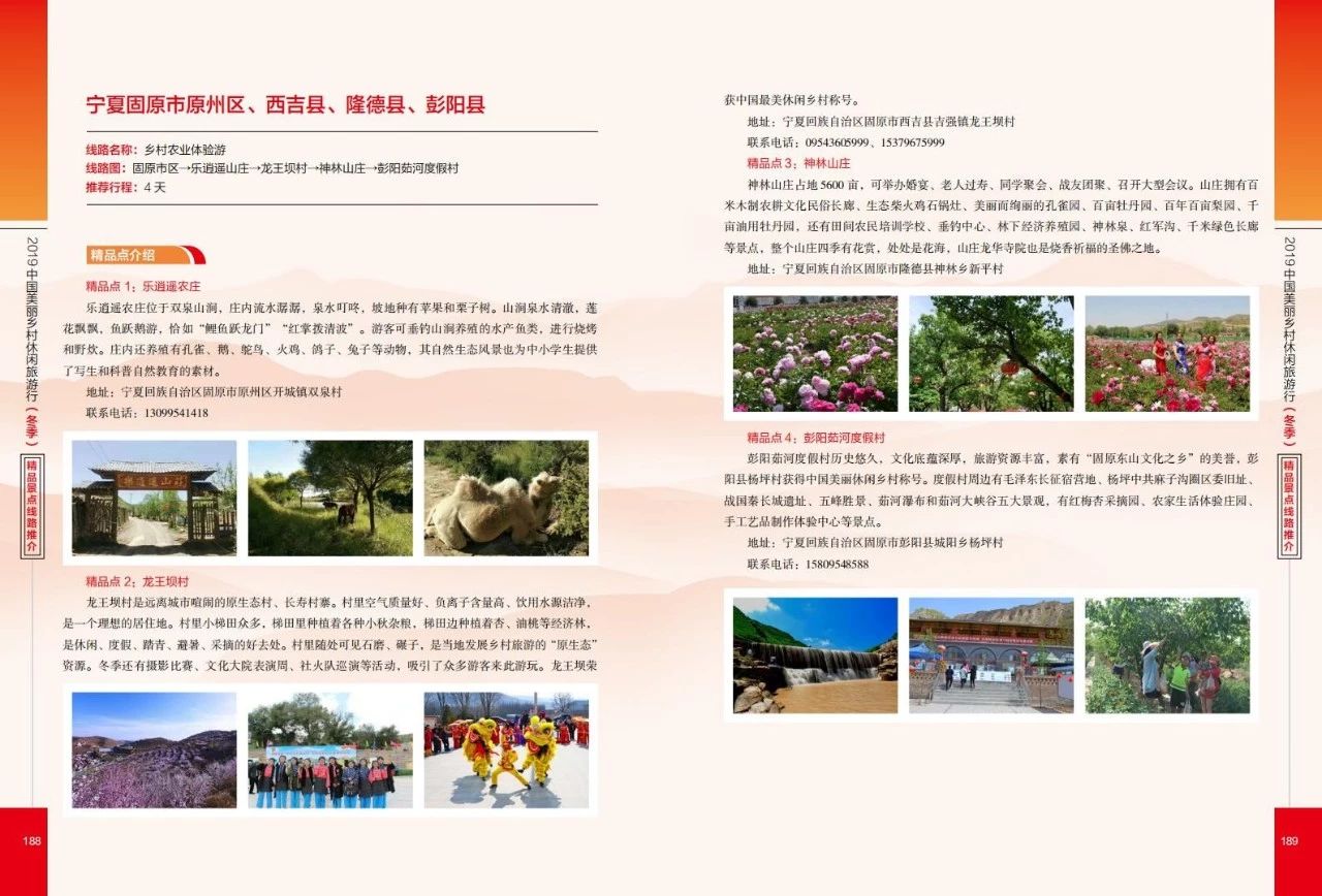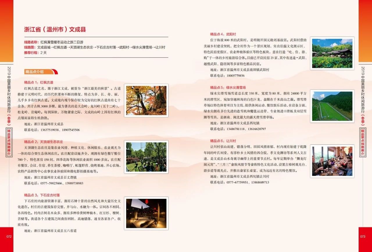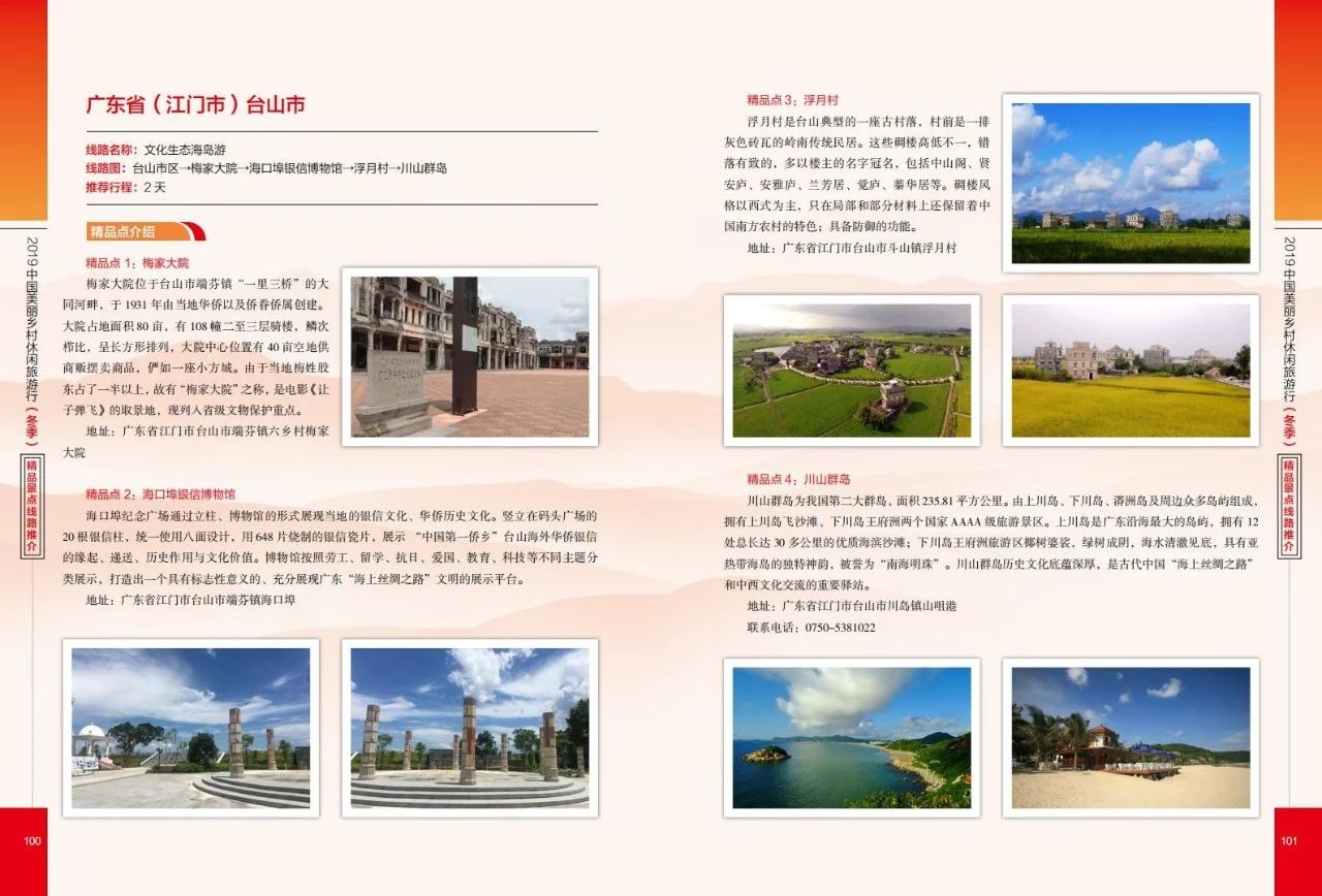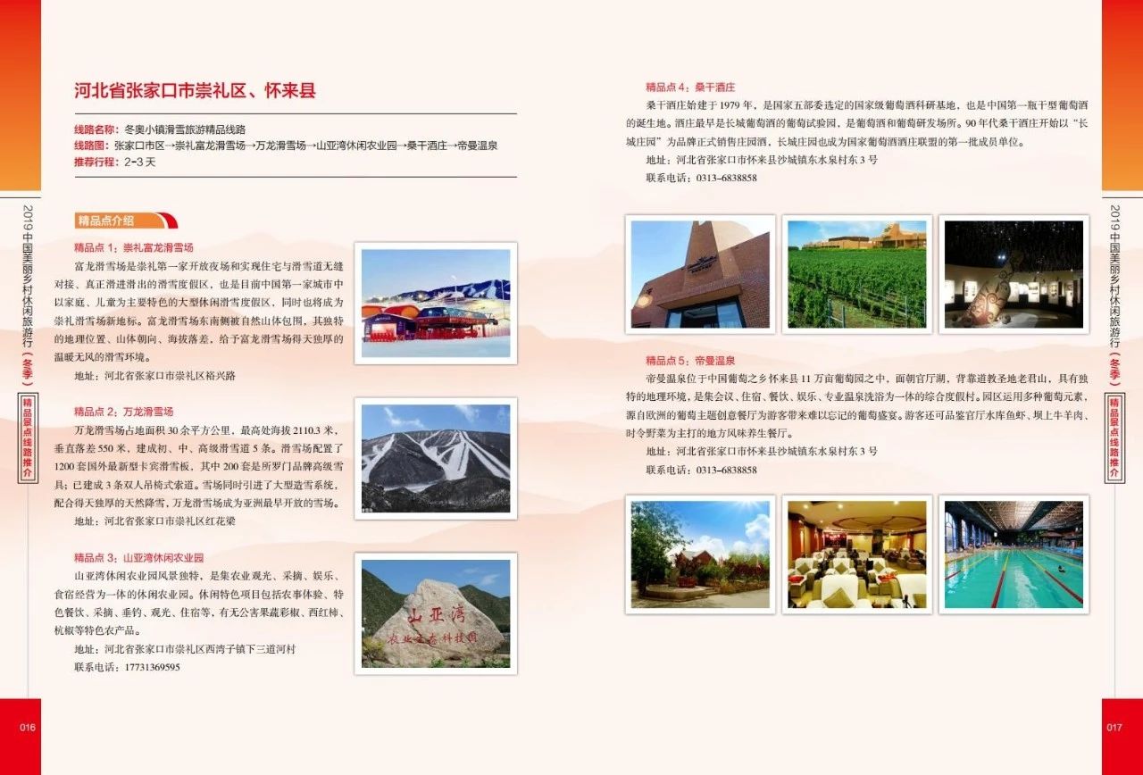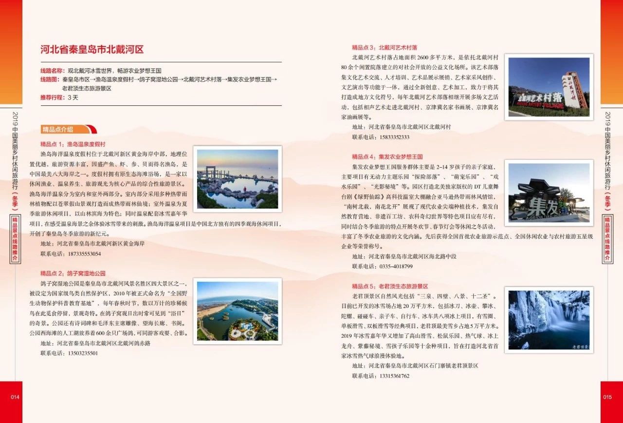 12月24日,2019中國(guó)美麗鄉(xiāng)村休閑旅游行(冬季)推介活動(dòng)在海南省瓊海市博鰲鎮(zhèn)舉辦,發(fā)布休閑農(nóng)業(yè)和鄉(xiāng)村旅游冬季精品旅游線路100條、景點(diǎn)273個(gè)。這是農(nóng)業(yè)農(nóng)村部鄉(xiāng)村休閑旅游“春觀花”“夏納涼”“秋采摘”“冬農(nóng)趣”系列推介活動(dòng)中的冬季主題活動(dòng)。至此,2019年四季活動(dòng)共推介線路410條、景點(diǎn)1300個(gè),精品景點(diǎn)線路37條。