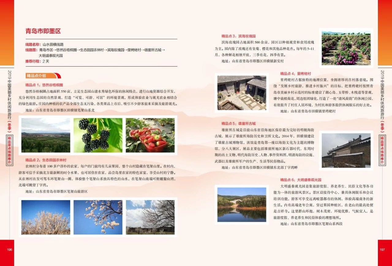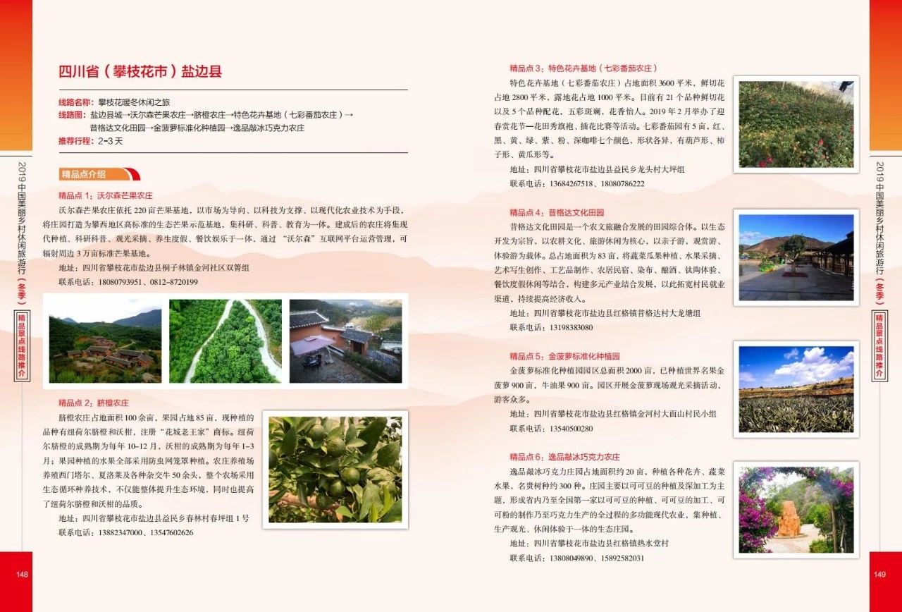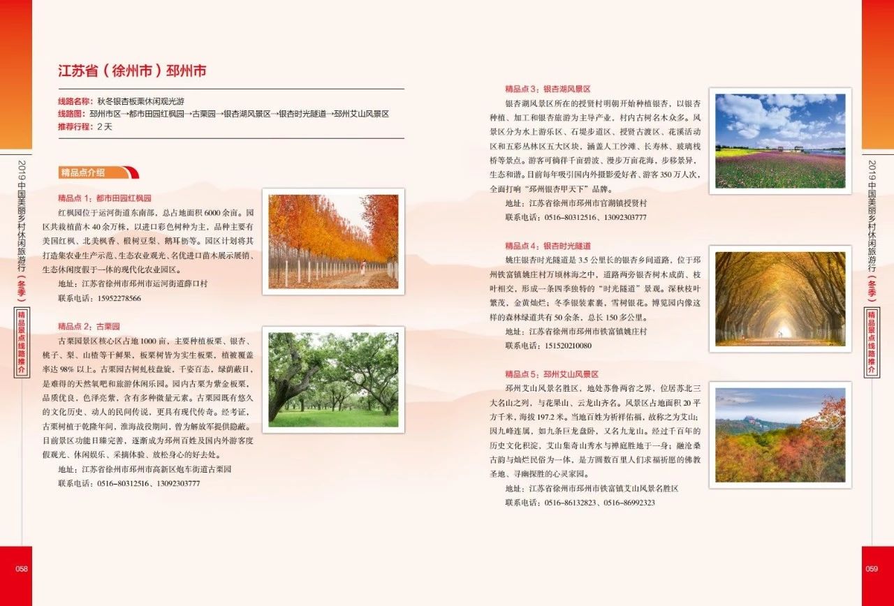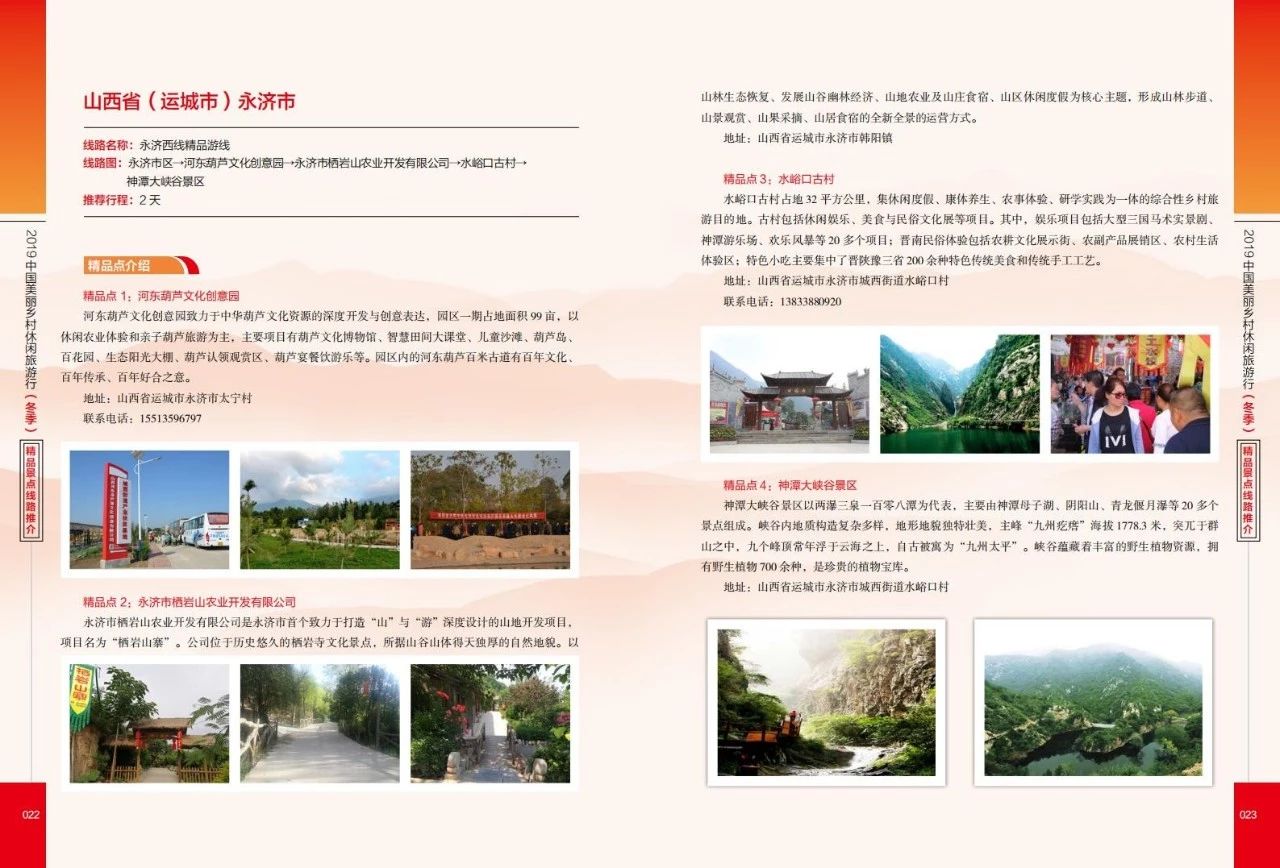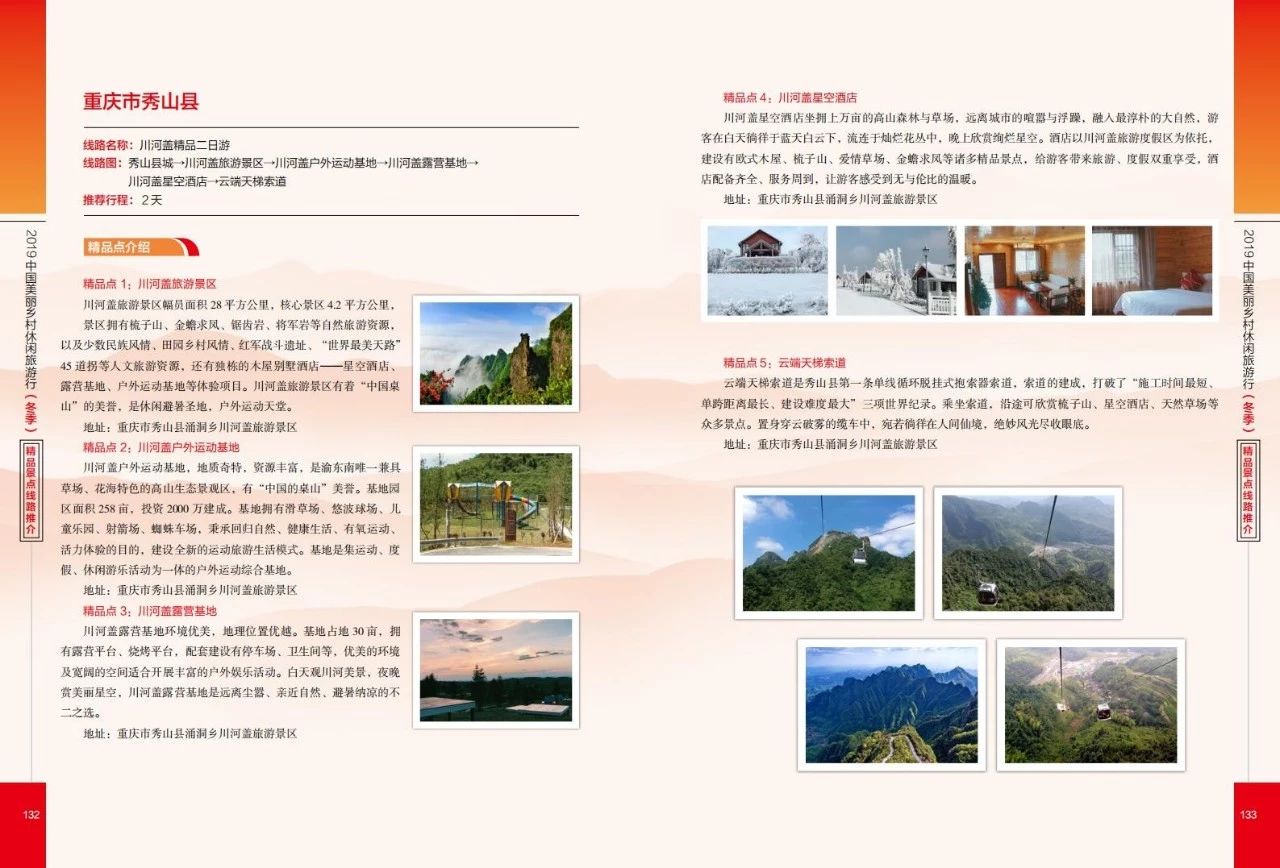 12月24日,2019中國(guó)美麗鄉(xiāng)村休閑旅游行(冬季)推介活動(dòng)在海南省瓊海市博鰲鎮(zhèn)舉辦,發(fā)布休閑農(nóng)業(yè)和鄉(xiāng)村旅游冬季精品旅游線路100條、景點(diǎn)273個(gè)。這是農(nóng)業(yè)農(nóng)村部鄉(xiāng)村休閑旅游“春觀花”“夏納涼”“秋采摘”“冬農(nóng)趣”系列推介活動(dòng)中的冬季主題活動(dòng)。至此,2019年四季活動(dòng)共推介線路410條、景點(diǎn)1300個(gè),精品景點(diǎn)線路37條。