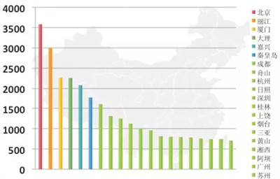 從泛民宿的區(qū)域分布來分析,國內(nèi)民宿主要聚集在個別大型城市和旅游城市中,例如北京、麗江、廈門和大理等,說明民宿主要供應(yīng)的人群是城市周邊游和旅游目的地游兩種,這種人群相對消費實力較強,對非標住宿的追求較高。