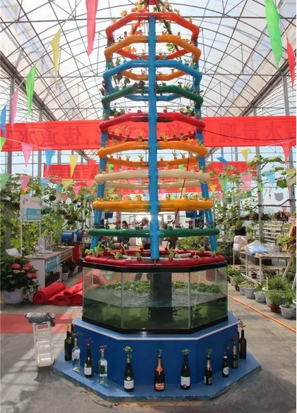 中國(guó)農(nóng)業(yè)大學(xué)富通公司設(shè)計(jì)的魚(yú)菜共生系統(tǒng)創(chuàng)造性的將微納米氣泡技術(shù)與魚(yú)菜循環(huán)系統(tǒng)完美結(jié)合,通過(guò)自主研發(fā)的微納米氣泡水發(fā)生裝置把氣體(如:空氣、氧氣、臭氧等)用高速旋回切割方式溶入水中,快速、高效地制取微納米氣泡水,提高氣體在水體中的溶解效率,為魚(yú)類提供充足的氧氣,同時(shí)通過(guò)循環(huán)系統(tǒng)將微納米氣泡水運(yùn)送至植物根系,有效提高植物根系含氧量,促進(jìn)植物生長(zhǎng)。