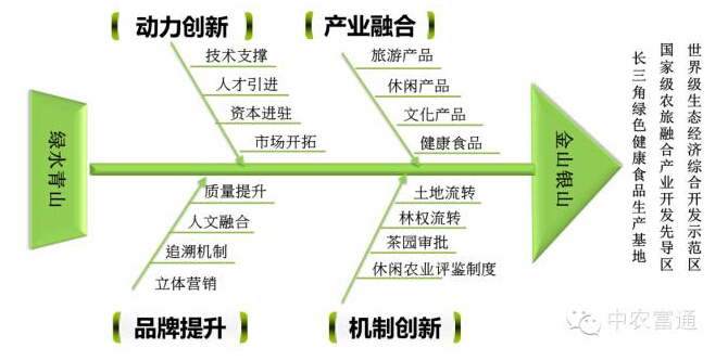 介于安吉縣擁有良好的生態(tài)優(yōu)勢,研究團隊認為:安吉縣農(nóng)林產(chǎn)業(yè)的發(fā)展應通過“動力創(chuàng)新、產(chǎn)業(yè)融合、品牌提升、機制創(chuàng)新”等途徑實現(xiàn)由“綠水青山”到“金山銀山”的轉(zhuǎn)變,使安吉農(nóng)林業(yè)朝著現(xiàn)代化、生態(tài)化的方向發(fā)展。