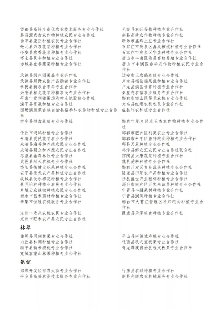 根據(jù)《國(guó)家農(nóng)民合作社示范社評(píng)定及監(jiān)測(cè)辦法》(農(nóng)經(jīng)發(fā)〔2019〕5號(hào))有關(guān)規(guī)定,農(nóng)業(yè)農(nóng)村部會(huì)同全國(guó)農(nóng)民合作社發(fā)展部際聯(lián)席會(huì)議成員單位開展了國(guó)家農(nóng)民合作社示范社評(píng)定,現(xiàn)將名單進(jìn)行公示,公示期為2021年5月12日至5月20日,聯(lián)系電話:010—59193128。