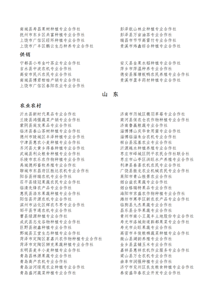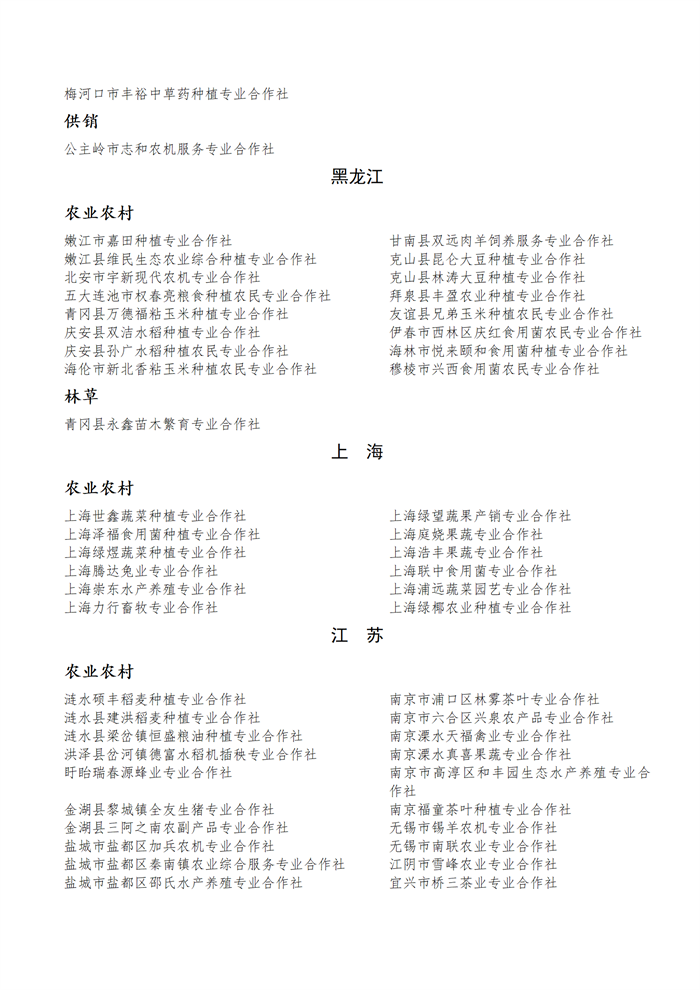 國(guó)家農(nóng)民合作社示范社公示名單.docx