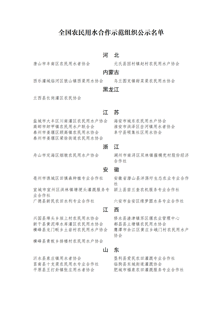 全國(guó)農(nóng)民用水合作示范組織公示名單.docx