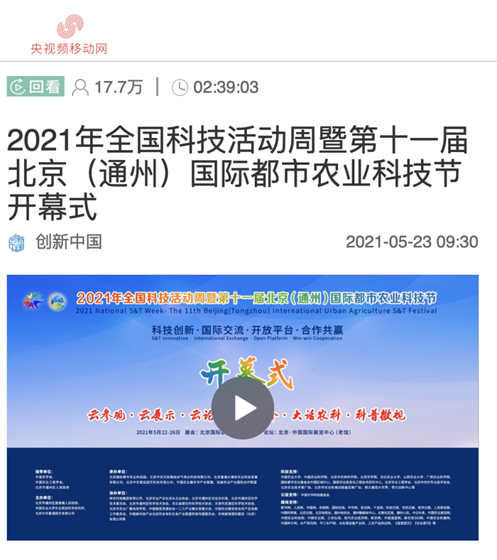當(dāng)前,我國已開啟全面建設(shè)社會主義現(xiàn)代化國家新征程,“三農(nóng)”工作轉(zhuǎn)入全面推進鄉(xiāng)村振興、加快農(nóng)業(yè)農(nóng)村現(xiàn)代化新階段。為進一步促進科技創(chuàng)新在農(nóng)業(yè)農(nóng)村領(lǐng)域的應(yīng)用,加強現(xiàn)代農(nóng)業(yè)產(chǎn)業(yè)技術(shù)體系建設(shè),加快科研成果轉(zhuǎn)化推廣,推進新思維、新理念、新業(yè)態(tài)、新模式、新技術(shù)、新設(shè)施、新設(shè)備、新品種落地,增強科技對都市農(nóng)業(yè)的服務(wù)功能,5月23日上午,2021年全國科技活動周暨第十一屆北京(通州)國際都市農(nóng)業(yè)科技節(jié)”(以下簡稱科技節(jié))在北京國際都市農(nóng)業(yè)科技園隆重開幕!