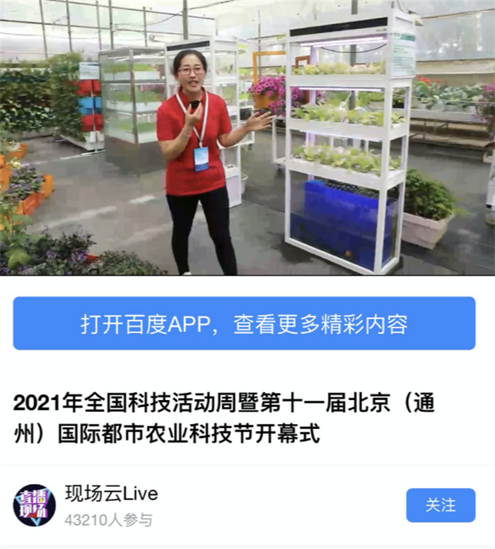 為了更全面、更直觀地感受現(xiàn)代農(nóng)業(yè)科技,本次活動特別設(shè)置了“云參觀”活動,此環(huán)節(jié)分為農(nóng)業(yè)實用科技、品種、水科技、高效設(shè)施栽培4個篇章,各媒體平臺通過現(xiàn)場直播的方式,帶網(wǎng)友們在科技園進行云參觀,科技園的工作人員們紛紛變身視頻主播,全方位、多角度地將現(xiàn)代農(nóng)業(yè)科技園區(qū)展現(xiàn)在大家面前。此外,北京國際都市農(nóng)業(yè)科技園國內(nèi)大型農(nóng)業(yè)實景科技展全年可參觀交流,錯過本次開幕活動的同仁可繼續(xù)前往北京國際都市農(nóng)業(yè)科技園進行參觀、學(xué)習(xí)。
