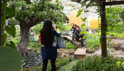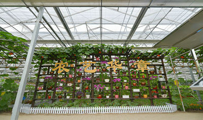 創(chuàng)意農業(yè)體驗區(qū)內,11000平米的連棟玻璃溫室分為“農藝華章”、“蔬藝花苑”、“和美田園”三個主題場館,薈萃了300余個新奇特果蔬、花卉品種。在這里,科技并不遙遠、農業(yè)同樣藝術,農業(yè)與創(chuàng)意的完美結合,拉近了都市居民與鄉(xiāng)村田園的心理距離,讓農業(yè)真正走入了人們的生活。