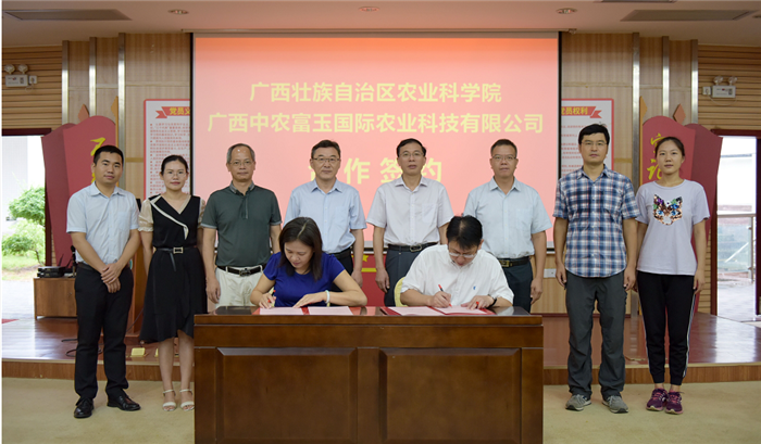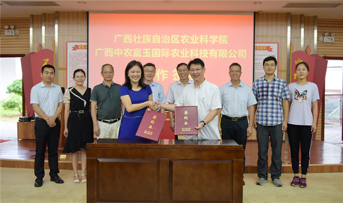▼廣西壯族自治區(qū)農(nóng)業(yè)科學(xué)院和中農(nóng)富玉就科研成果轉(zhuǎn)化、技術(shù)推廣、人才培養(yǎng)、項(xiàng)目規(guī)劃等開(kāi)展交流與合作,并于6月15日上午在農(nóng)科院舉行簽約儀式。