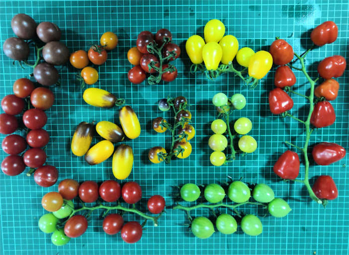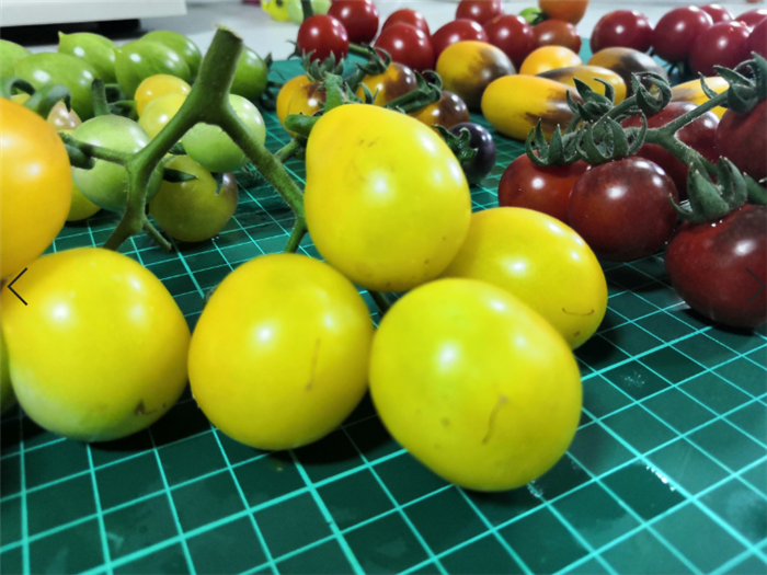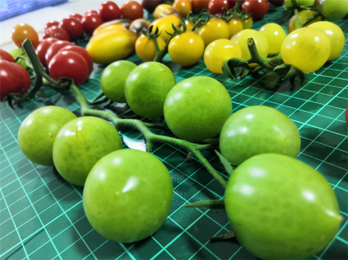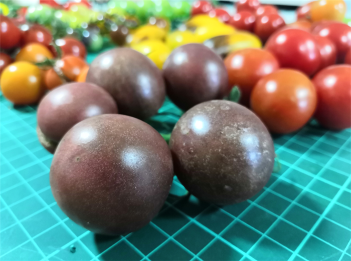 ▼中農(nóng)富通科技園研發(fā)溫室新品種培育果型各異、顏色豐富、口感優(yōu)良。近15余種,包括綠色、巧克力色、黑色等顏色比較珍稀的品種。