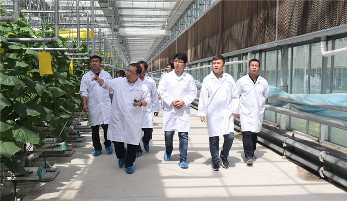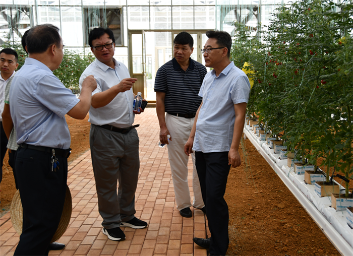 韋院長一行參觀了由中農(nóng)富通設(shè)計建設(shè)的溫室大棚,詳細(xì)了解溫室大棚的建設(shè)及使用情況,并就廣西亞熱帶農(nóng)科新城設(shè)施農(nóng)業(yè)項目的啟動進(jìn)行了建設(shè)性的探討與交流。