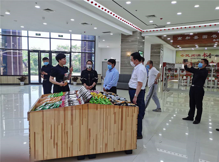▼5月18日,赤峰翁牛特旗政府領(lǐng)導參觀南和嘉年華特色農(nóng)產(chǎn)品展銷區(qū)。