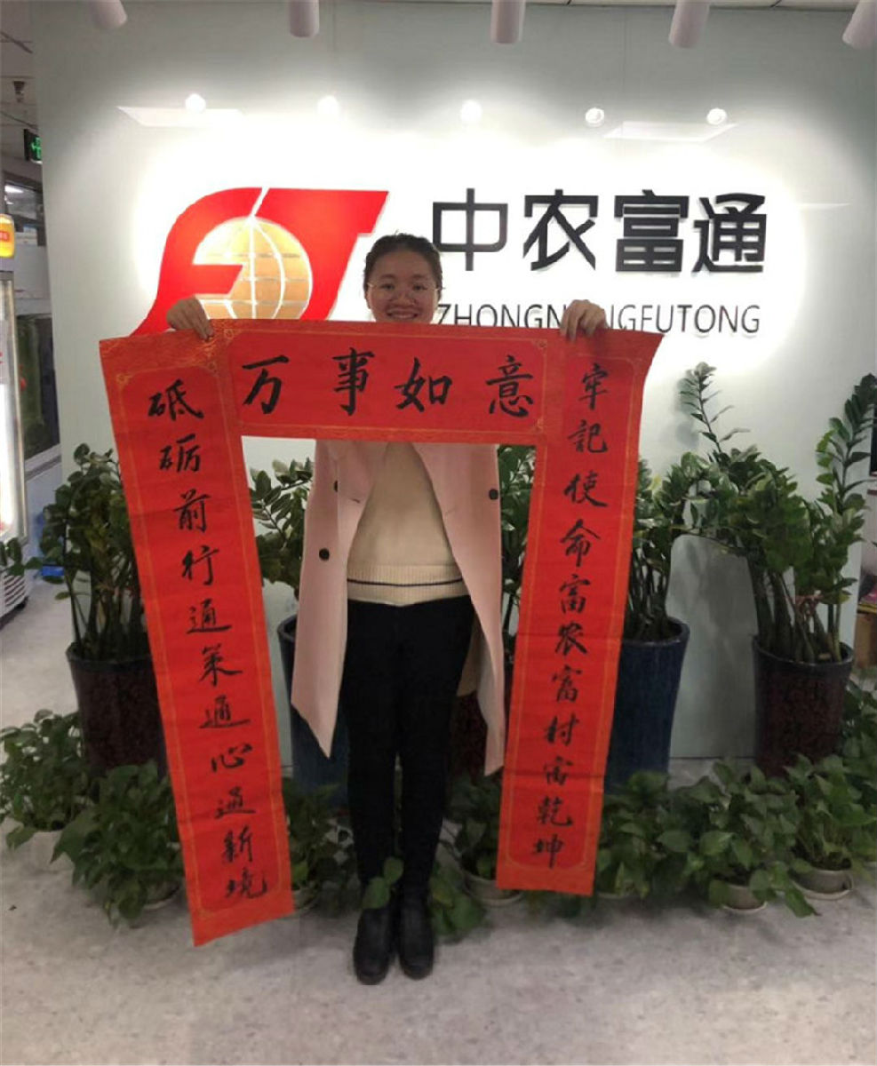 ▼春節(jié)到來之際,中國農大書畫協(xié)會許一飛等專家贈予中農富通春節(jié)對聯(lián)及福字,表達對中農富通的美好祝福,在這里衷心祝愿各位專家新春快樂、鼠年大吉、身體健康、闔家幸福!