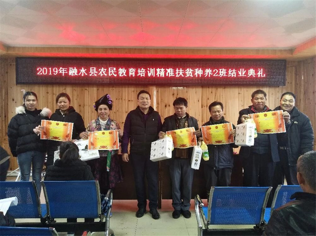▼1月15日,2019年融水縣農民教育培訓精準扶貧種養(yǎng)班舉行結業(yè)典禮,培訓圓滿結束。