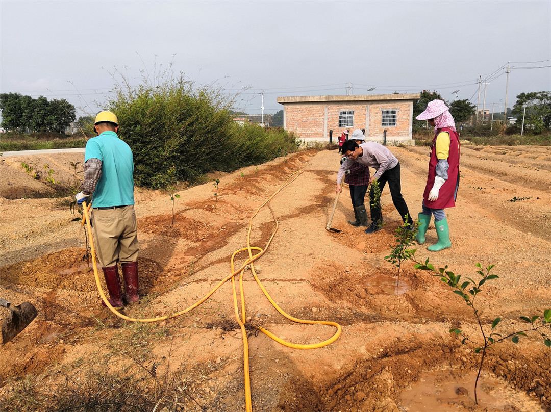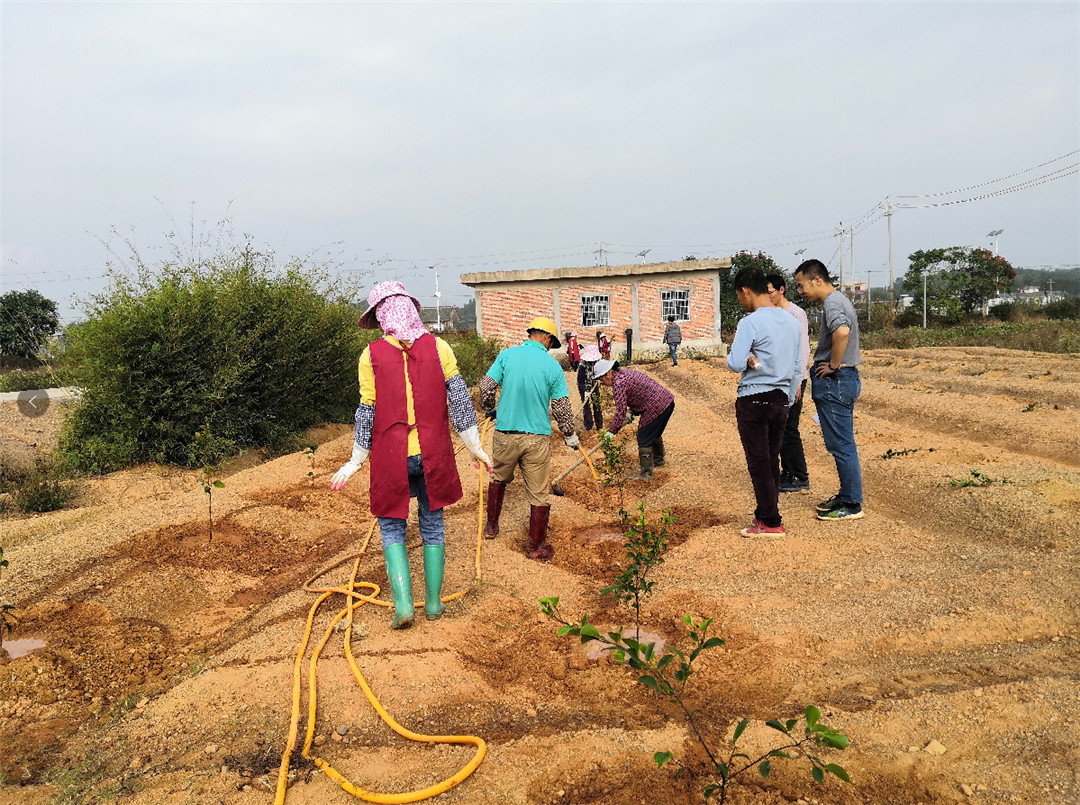 ▼雖然春節(jié)即將到來,但中農富玉各項工程仍火熱進行中,將為2020年業(yè)績大豐收打下堅實的基礎。下圖為中農富玉員工在科技園進行油茶定植。