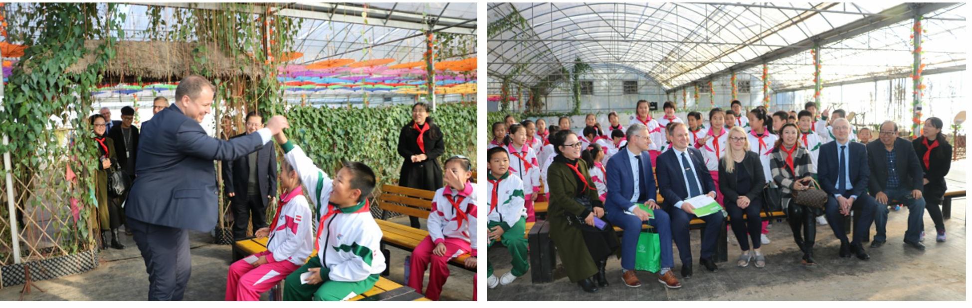參觀過程中,在草莓溫室外賓對園區(qū)草莓新品種培育產(chǎn)生了濃厚的興趣,詢問草莓的種植技術(shù)、種植環(huán)境及產(chǎn)量,科技園副總工李玉江進行了詳細(xì)的講解;在花卉景觀溫室對百香果花發(fā)出了驚嘆,“太漂亮了,從來沒有見過這種植物”;在果樹區(qū)對科技園全程機械化種植管理應(yīng)用表示了贊賞;在科技園田間超市詳細(xì)了解了果樹枝粉碎種蘑菇、高密度養(yǎng)魚及微納米氣泡技術(shù),表示可借鑒學(xué)習(xí);當(dāng)走向科技園科普大講堂區(qū)域,國際外賓受到了在科技園進行“我與小樹共成長”公開課的通州運河小學(xué)師生的熱情邀請,互相擊掌表示友好,并集體拍照留念;