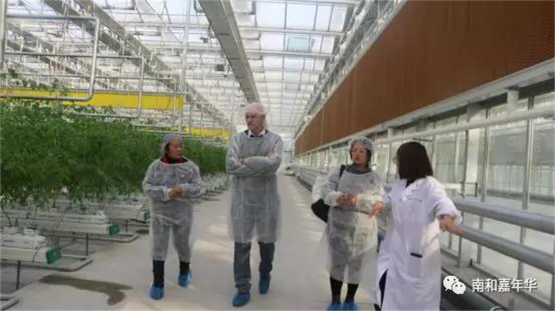 會后,Elliott教授前往河北省南和農(nóng)業(yè)嘉年華和現(xiàn)代設(shè)施農(nóng)業(yè)產(chǎn)業(yè)集群項目地進(jìn)行參觀考察(溫室規(guī)模16.3公頃)。教授在當(dāng)?shù)仄穱L了產(chǎn)業(yè)集群溫室出產(chǎn)的新鮮果蔬,并在嘉年華體驗了多種特色活動,對嘉年華的模式和農(nóng)業(yè)科技栽培展示水平高度贊賞。