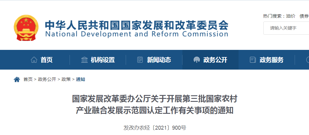 各省、自治區(qū)、直轄市及計劃單列市、新疆生產建設兵團發(fā)展改革委按照《國家農村產業(yè)融合發(fā)展示范園創(chuàng)建工作方案》《國家農村產業(yè)融合發(fā)展示范園認定管理辦法(試行)》要求......