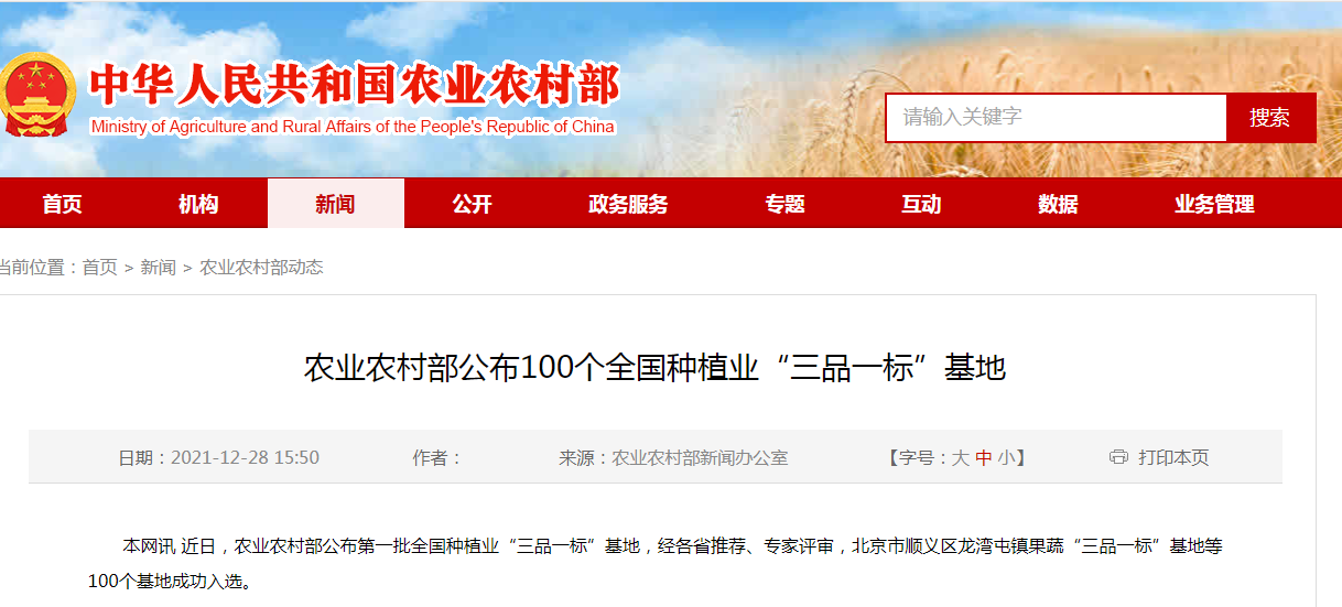 本網訊 近日,農業(yè)農村部公布第一批全國種植業(yè)“三品一標”基地,經各省推薦、專家評審,北京市順義區(qū)龍灣屯鎮(zhèn)果蔬“三品一標”基地等100個基地成功入選。 今......