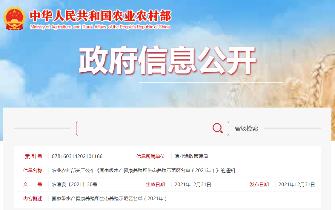 為貫徹落實2021年中央1號文件關于推進水產綠色健康養(yǎng)殖有關精神,根據《農業(yè)農村部關于印發(fā)〈國家級水產健康養(yǎng)殖和生態(tài)養(yǎng)殖示范區(qū)管理辦法(試行)〉的通知》(農漁發(fā)......