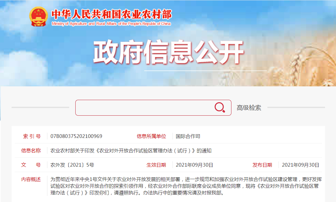 第一章 總則第一條 為進(jìn)一步規(guī)范和加強(qiáng)農(nóng)業(yè)對(duì)外開放合作試驗(yàn)區(qū)建設(shè)管理,更好發(fā)揮試驗(yàn)區(qū)對(duì)農(nóng)業(yè)對(duì)外開放合作的探索引領(lǐng)作用,根據(jù)國家有關(guān)政策、法規(guī)和農(nóng)業(yè)對(duì)外合作部際......