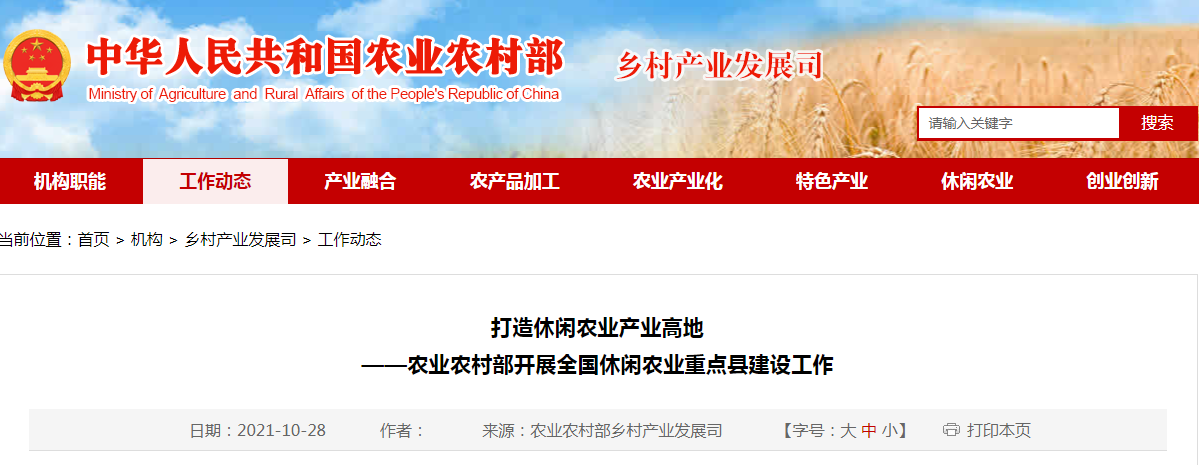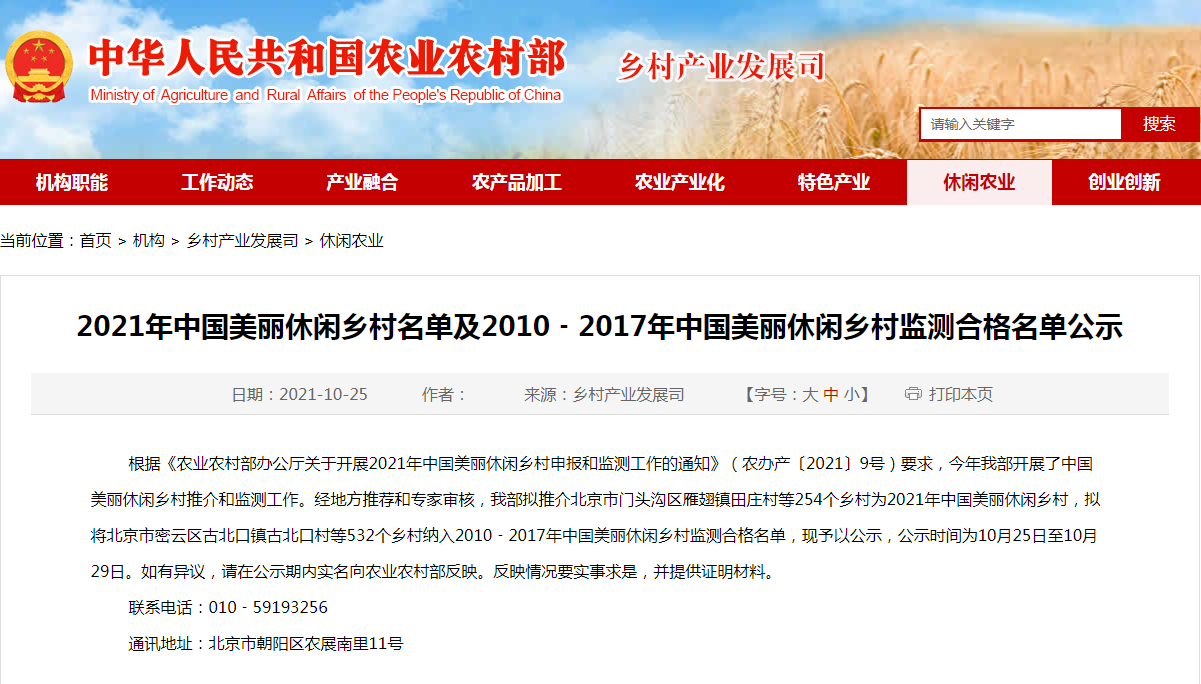 根據(jù)《農(nóng)業(yè)農(nóng)村部辦公廳關(guān)于開展2021年中國美麗休閑鄉(xiāng)村申報(bào)和監(jiān)測工作的通知》(農(nóng)辦產(chǎn)〔2021〕9號(hào))要求,今年我部開展了中國美麗休閑鄉(xiāng)村推介和監(jiān)測工作。經(jīng)地......