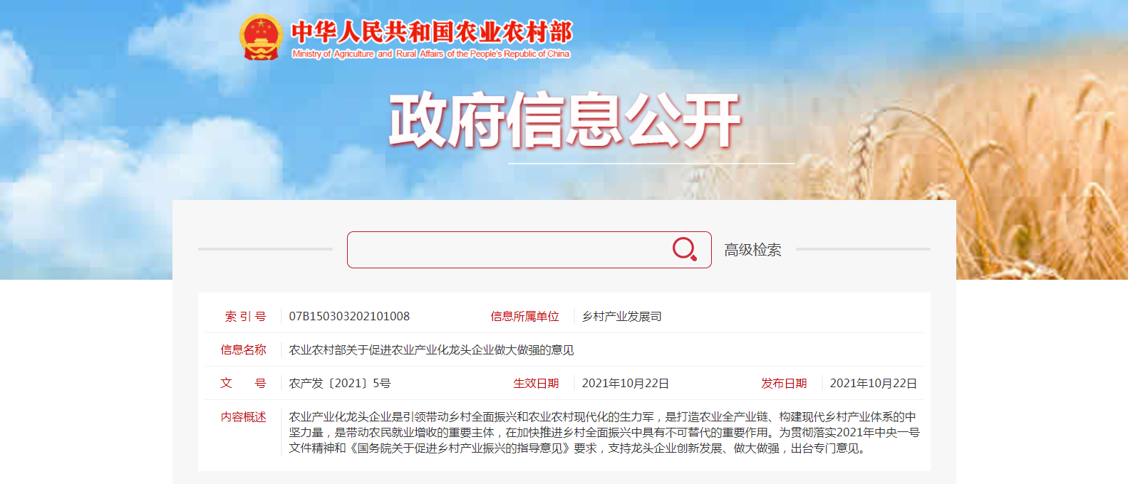 農(nóng)業(yè)產(chǎn)業(yè)化龍頭企業(yè)(以下簡稱“龍頭企業(yè)”)是引領(lǐng)帶動(dòng)鄉(xiāng)村全面振興和農(nóng)業(yè)農(nóng)村現(xiàn)代化的生力軍,是打造農(nóng)業(yè)全產(chǎn)業(yè)鏈、構(gòu)建現(xiàn)代鄉(xiāng)村產(chǎn)業(yè)體系的中堅(jiān)力量,是帶動(dòng)農(nóng)民就業(yè)增收......