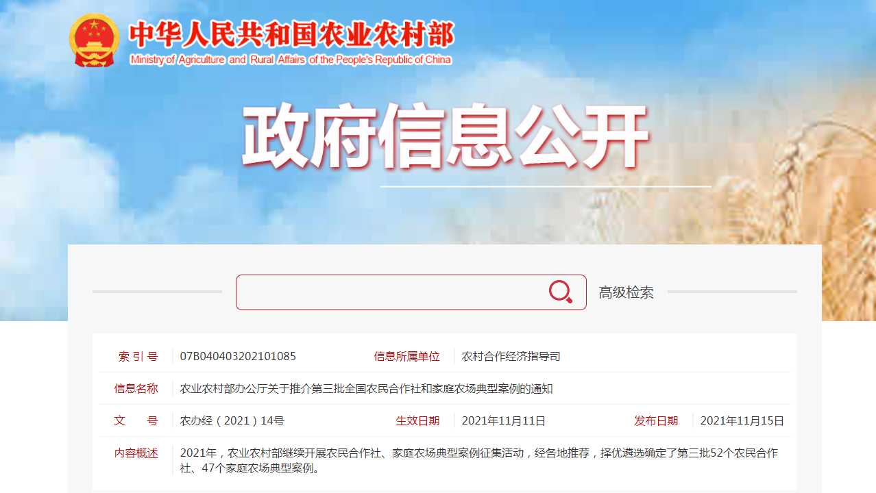 各省、自治區(qū)、直轄市及計(jì)劃單列市農(nóng)業(yè)農(nóng)村(農(nóng)牧)廳(局、委),新疆生產(chǎn)建設(shè)兵團(tuán)農(nóng)業(yè)農(nóng)村局: 加快培育農(nóng)民合作社、家庭農(nóng)場等新型農(nóng)業(yè)經(jīng)營主體,是“十四五......