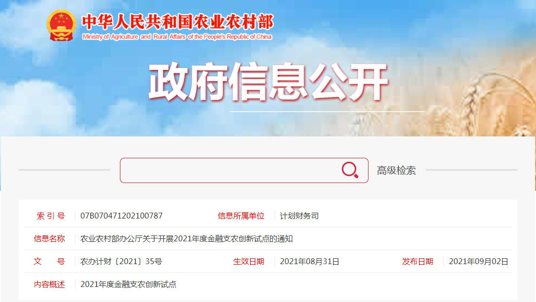 各省、自治區(qū)、直轄市農(nóng)業(yè)農(nóng)村(農(nóng)牧)廳(局、委),相關(guān)金融保險機構(gòu): 為深入貫徹落實中央一號文件部署,強化農(nóng)業(yè)農(nóng)村優(yōu)先發(fā)展投入保障,加快破解農(nóng)村金融發(fā)展的痛點......