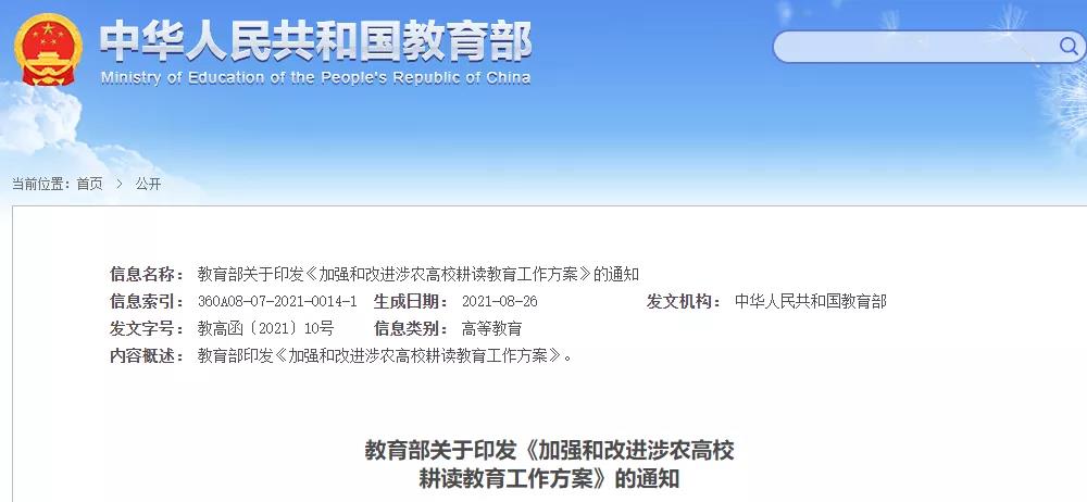 ●近日,教育部印發(fā)《加強和改進涉農(nóng)高校耕讀教育工作方案》,對涉農(nóng)高校加強和改進耕讀教育作出部署,提出把握耕讀教育基本內(nèi)涵、構(gòu)建耕讀教育課程教材體系、多渠道拓展實......