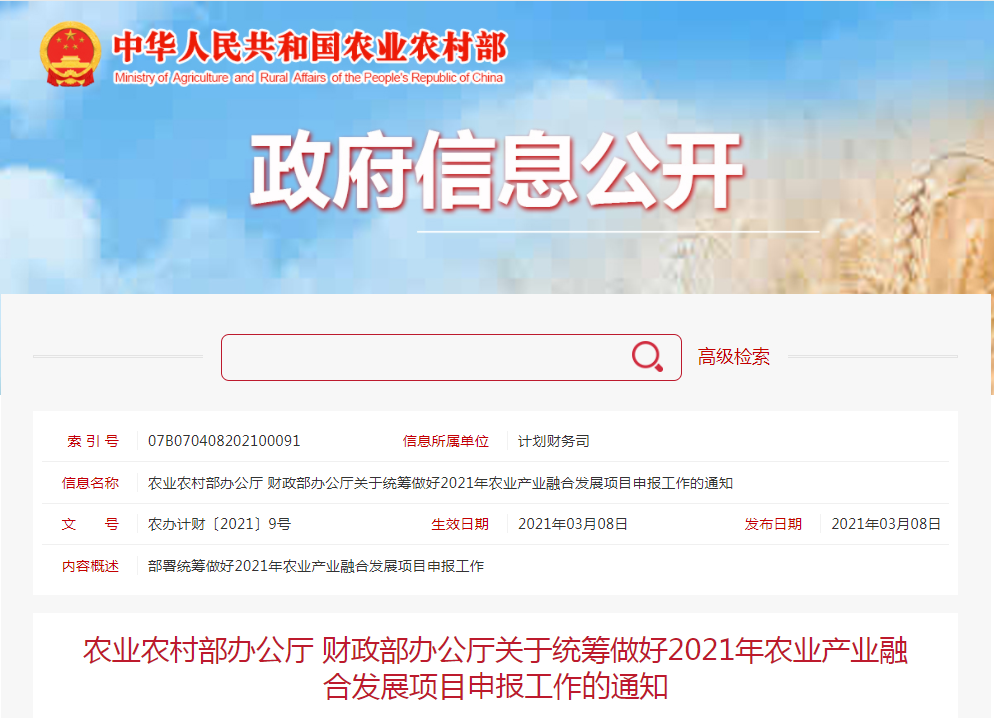 2021年,在對以前年度符合條件的項目給予延續(xù)支持的基礎上,中央財政支持新創(chuàng)建50個國家現(xiàn)代農業(yè)產業(yè)園、50個優(yōu)勢特色產業(yè)集群、300個農業(yè)產業(yè)強鎮(zhèn),推動鄉(xiāng)村產......