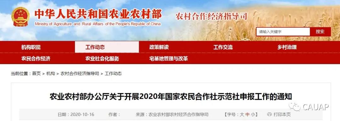 農(nóng)業(yè)農(nóng)村部辦公廳關(guān)于開展2020年國家農(nóng)民合作社示范社申報(bào)工作的通知 各省、自治區(qū)、直轄市及計(jì)劃單列市農(nóng)業(yè)農(nóng)村(農(nóng)牧)廳(局、委),新疆生產(chǎn)建設(shè)兵團(tuán)農(nóng)業(yè)農(nóng)村局:......